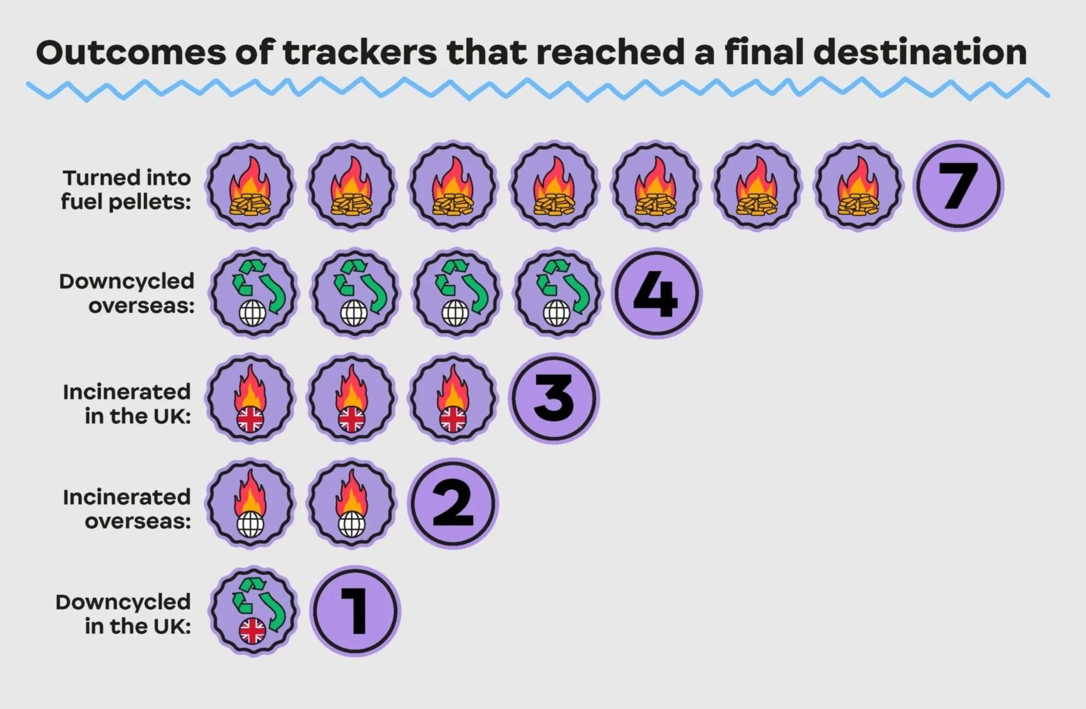 Collectively, these tracked bundles of soft plastic were found to have travelled over 25,000 km across the UK and overseas. Out of the trackers that we know reached a final destination…